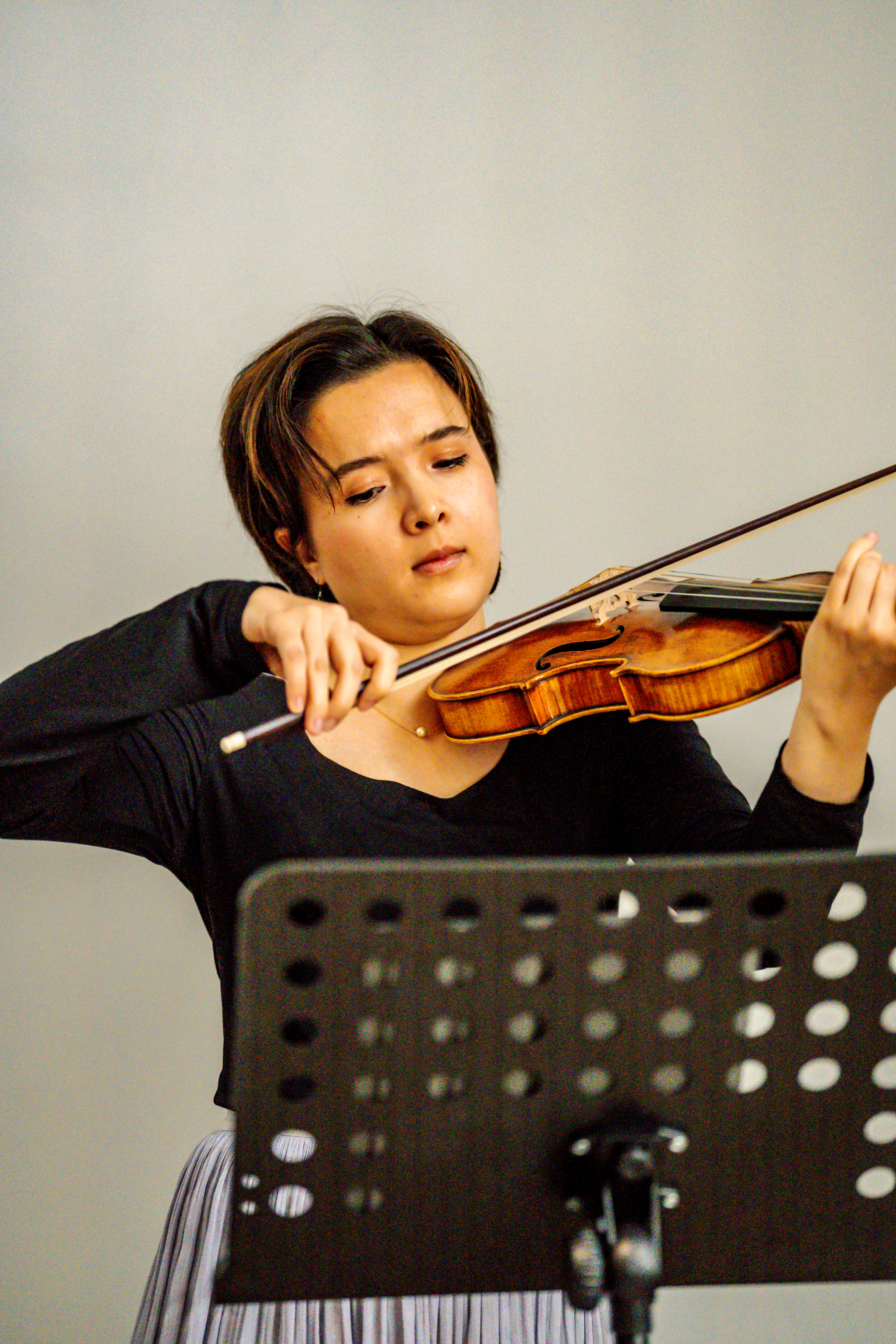 Enesh Dzhanykova est une violoniste baroque originaire du Turkménistan, où elle fait ses premiers pas dans la musique. En 2016, elle intègre le Conservatoire à Rayonnement Régional de Versailles pour y étudier le violon moderne. C'est en arrivant en France qu'elle découvre la musique ancienne et décide finalement de se consacrer exclusivement à la pratique des instruments historiques.Elle poursuit ses études à l'Institut Royal Supérieur de Musique et de Pédagogie de Namur en Belgique, où elle obtient son diplôme de Bachelor en violon moderne avec grande distinction, tout en étudiant parallèlement le violon baroque au Conservatoire Royal de Bruxelles. En 2022, elle intègre le CNSMD de Lyon dans la classe d'Odile Édouard.En plus d’avoir participé à de nombreuses masterclasses et festivals, Enesh Dzhanykova a eu l'occasion de jouer avec des ensembles baroques tels que Le Concert de l'Hostel Dieu sous la direction de Frank-Emmanuel Comte et Les Ombres, aux côtés de Sylvain Sartre et Margaux Blanchard.Enesh Dzhanykova a été finaliste de divers concours, comme le concours de violon baroque Marco Uccellini en Italie et le concours de musique de chambre FestiVita25 à Bruxelles, avec le luthiste Pierre-Baptiste Brioude avec qui elle forme le duo Cordes-Liées depuis 2022.